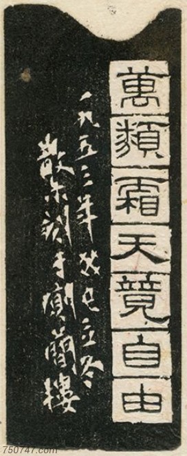 印文:万类霜天竞自由 作者:邓散木 年代:1953 来源:散木印集 边款:万类霜天竞自由,一九五三年,癸已立冬,散木刻于厕简楼 尺寸: