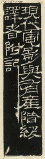 印文:L 作者:钱君匋 年代:1930年 来源:鲁迅印谱 边款:现代电影于有产阶级译者附记。 尺寸: