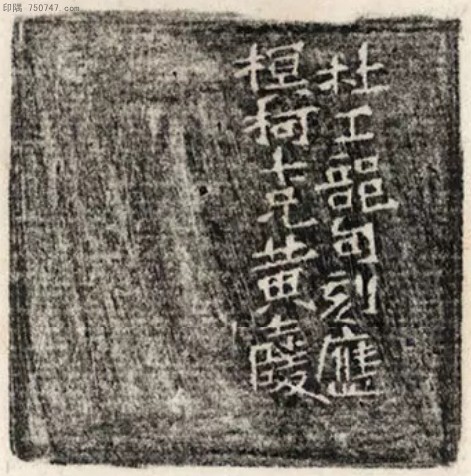 印文:富贵于我如浮云 作者:黄牧甫 年代: 来源:黄牧甫印存十三集 边款:杜工部句刻应,榠柯七兄,黄士陵。 尺寸: